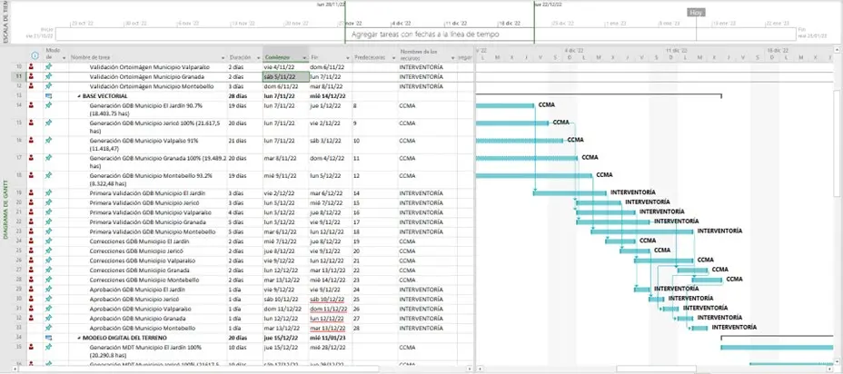 We provide supervision and quality control services for cartographic production projects using various remote sensors for engineering, environmental, and land registry purposes, complying with the guidelines of the IGAC and other entities that receive geographic information.